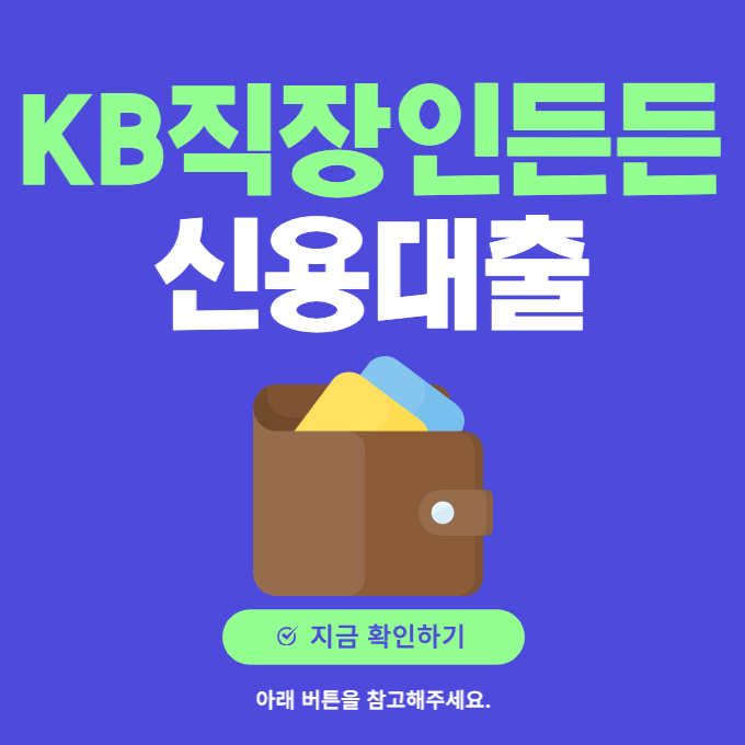 KB직장인든든 신용대출 바로가기 300x250 KB직장인든든 신용대출을 알아보고 계신가요? 최근 금리가 급격하고 오르고 있습니다. 따라서 신용대출이 필요하시다면 대출 금리가 더 오르기 전에 받으시는 것이 유리합니다. KB직장인든든 신용대출은 최대 3억 원까지 최장 10년까지 대출이 가능한 신용대출 상품입니다. 신용대출 자격과 내가 받을 수 있는 금리, 신청방법을 지금 바로 알아보세요. 반응형 공유하기 게시글 관리 브릿존 저작자표시 비영리 변경금지 (새창열림)